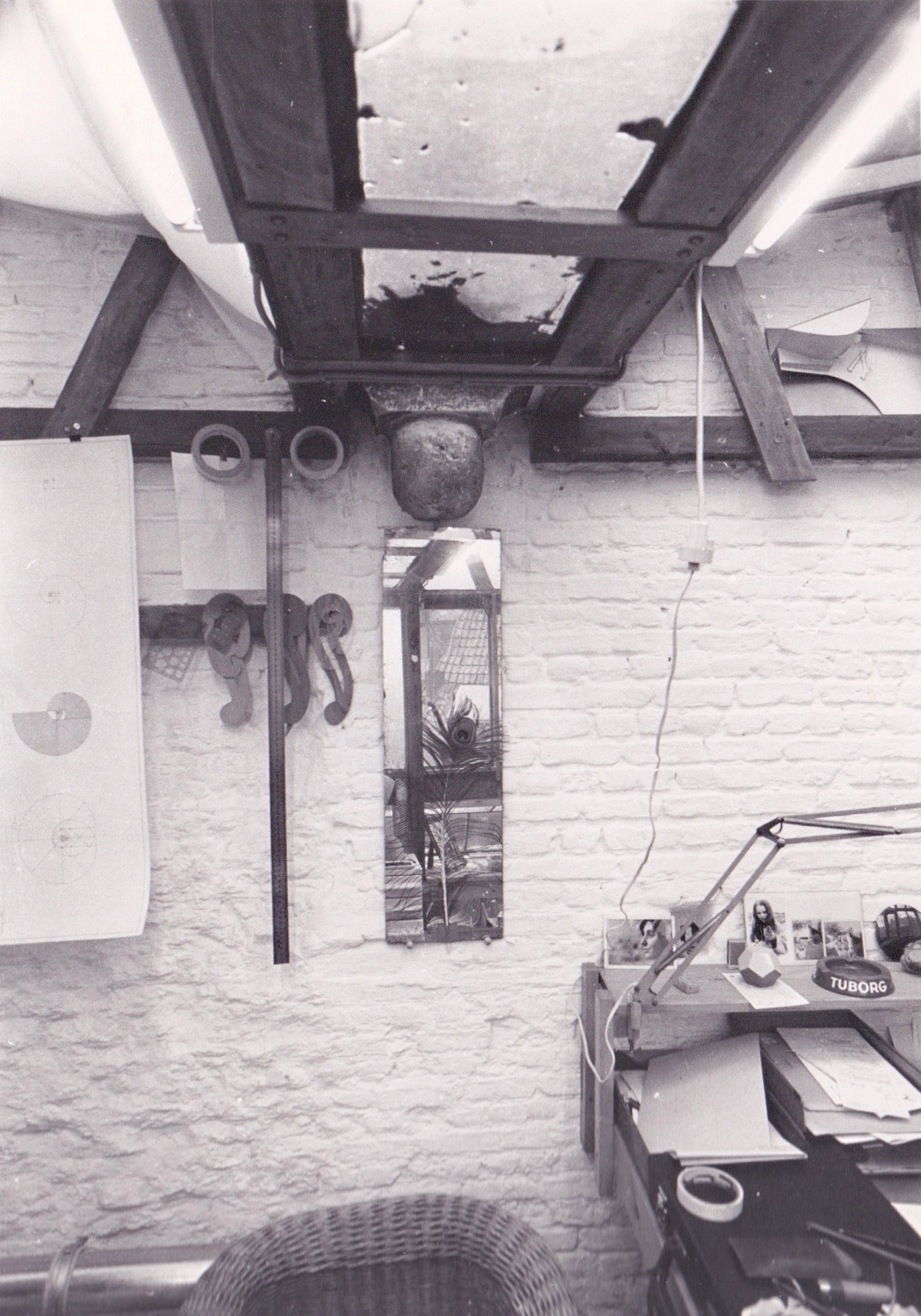 What started as a series of conversations with Nico Dockx and Judith Wielander (Expanding Academy), quickly turned into a one-week workshop, which took place in October 2021 and was centred around the ‘deconstruction’ of Laenen’s former studio in Mechelen. Conceived as a light-weight structure leaning against the historical city walls surrounding the garden and courtyard, this two-storey studio space overlooking the roofs of the old beguinage of Mechelen was built and designed by Laenen in the 70s. He later moved his studio to the garage located at the other end of the garden.